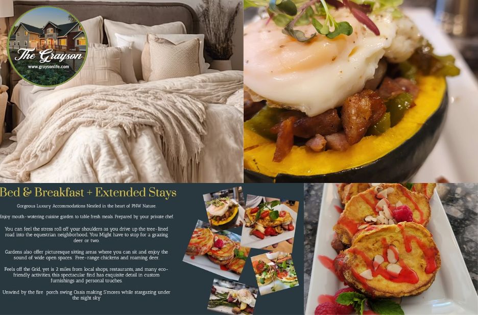 Find a peaceful bed and breakfast in washington state offering pet-friendly rooms, furnished rentals, and extended stays. Enjoy garden views, meals, and flexible housing options at graysonlife.com in a tranquil Pacific Northwest setting.